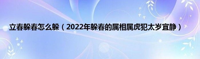 大家好,综合小编来为大家讲解下。立春躲春怎么躲,2022年躲春的属相属虎犯太岁宜静这个很多人还不知道,现在让我们一起来看看吧!