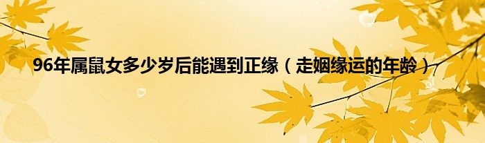 本文96年属鼠女多少岁后能遇到正缘,走姻缘运的年龄到此分享完毕,希望对大家有所帮助。