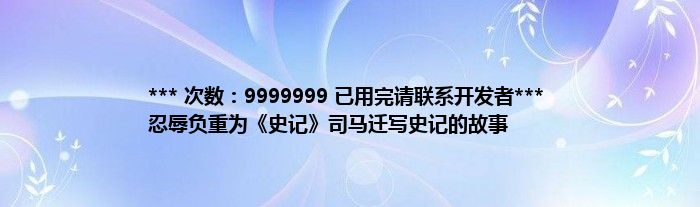 本文*** 次数:9999999 已用完请联系开发者*** 忍辱负重为《史记》司马迁写史记的故事到此分享完毕,希望对大家有所帮助。