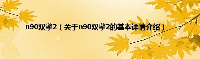 本文关于n90双擎2的基本详情介绍就讲解完毕,希望对大家有所帮助。