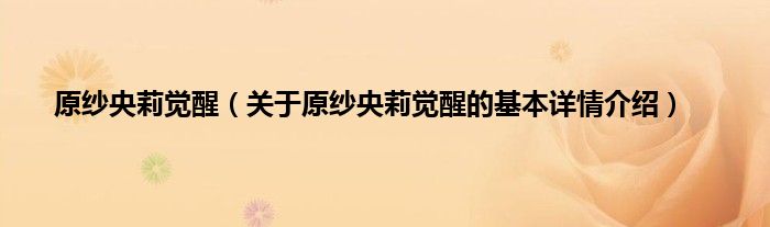 大家好我是小蝌蚪,原纱央莉觉醒,关于原纱央莉觉醒的基本详情介绍很多人还不知道,那么现在让我们一起来看看吧!