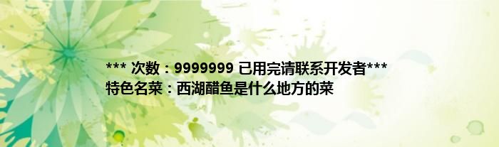 本文*** 次数:9999999 已用完请联系开发者*** 特色名菜:西湖醋鱼是什么地方的菜到此分享完毕,希望对大家有所帮助。