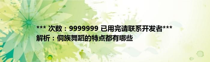*** 次数:9999999 已用完请联系开发者*** 解析:侗族舞蹈的特点都有哪些