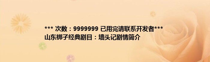 *** 次数:9999999 已用完请联系开发者*** 山东梆子经典剧目:墙头记剧情简介