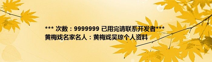 大家好,综合小编来为大家讲解下。*** 次数:9999999 已用完请联系开发者*** 黄梅戏名家名人:黄梅戏吴琼个人资料这个很多人还不知道,现在让我们一起来看看吧!