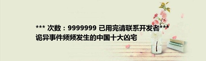*** 次数:9999999 已用完请联系开发者*** 诡异事件频频发生的中国十大凶宅