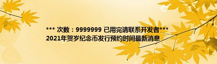 大家好,综合小编来为大家讲解下。*** 次数:9999999 已用完请联系开发者*** 2021年贺岁纪念币发行预约时间最新消息这个很多人还不知道,现在让我们一起来看看吧!