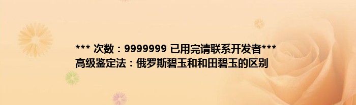 本文*** 次数:9999999 已用完请联系开发者*** 高级鉴定法:俄罗斯碧玉和和田碧玉的区别到此分享完毕,希望对大家有所帮助。
