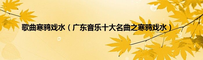 大家好,综合小编来为大家讲解下。歌曲寒鸦戏水,广东音乐十大名曲之寒鸦戏水这个很多人还不知道,现在让我们一起来看看吧!