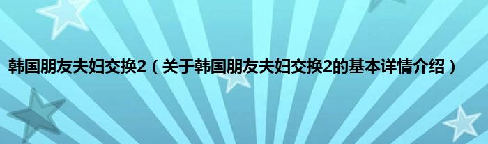 韩国朋友夫妇交换2(关于韩国朋友夫妇交换2的基本详情介绍)