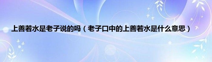 大家好,综合小编来为大家讲解下。上善若水是老子说的吗,老子口中的上善若水是什么意思这个很多人还不知道,现在让我们一起来看看吧!