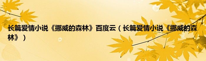 大家好,综合小编来为大家讲解下。长篇爱情小说《挪威的森林》百度云,长篇爱情小说《挪威的森林》这个很多人还不知道,现在让我们一起来看看吧!