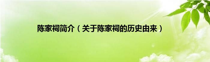 1、 那么,本期民族文化一起了解陈家祠的历史由来。
