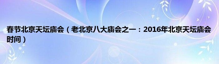 本文春节北京天坛庙会,老北京八大庙会之一:2016年北京天坛庙会时间到此分享完毕,希望对大家有所帮助。
