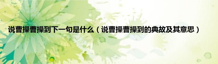 大家好,综合小编来为大家讲解下。说曹操曹操到下一句是什么,说曹操曹操到的典故及其意思这个很多人还不知道,现在让我们一起来看看吧!
