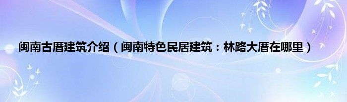 大家好,综合小编来为大家讲解下。闽南古厝建筑介绍,闽南特色民居建筑:林路大厝在哪里这个很多人还不知道,现在让我们一起来看看吧!