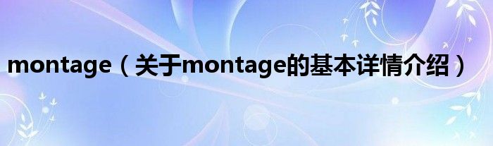本文关于montage的基本详情介绍就讲解完毕,希望对大家有所帮助。