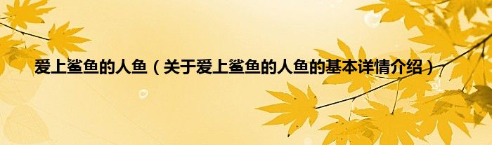本文关于爱上鲨鱼的人鱼的基本详情介绍就讲解完毕,希望对大家有所帮助。