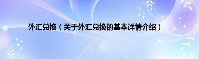 本文关于外汇兑换的基本详情介绍就讲解完毕,希望对大家有所帮助。