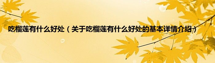 本文关于吃榴莲有什么好处的基本详情介绍就讲解完毕,希望对大家有所帮助。