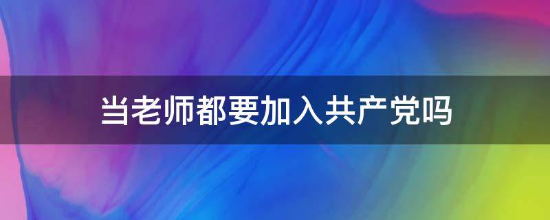 当老师不是都要加入共产党,因为没有统一规定说当老师一定具备党员这一条件,但教师资格证是当老师必备的条件。老师是一种职业,指教学生正确知识的人。老师有各种各样的教育类型,同时也泛指在某方面值得学习,和能够给大家带来正确知识、有能力的人。相关节日是9月10日的教师节,贯彻国家的教育方针、遵守规章制度、执行学校的教学计划、履行教师聘约、完成教育教学工作任务。对学生进行宪法所确定的基本原则的教育和爱国主义、民族团结的教育,法制教育以及思想品德、文化、科学教育。组织、带领学生开展有益的社会活动。