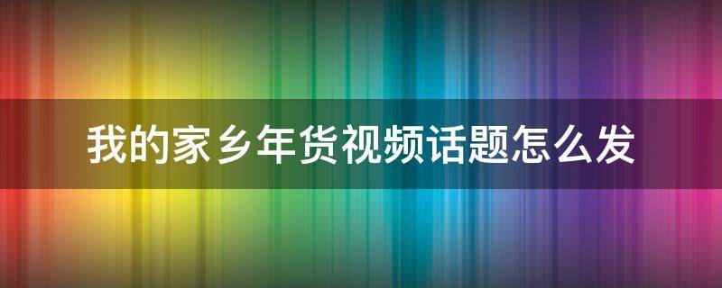 我的家乡年货视频话题可以发:我的家乡特产、向全抖音推荐家乡年货、优质农产品、祝朋友们新年快乐等。话题是谈话的中心,但不限于谈话的中心,加上各种意见才是一个充实的话题,其实也就是人们日常生活中关注的各种事件的一个概括。在当前社会经济高速发展时期,大家对同一个问题会有很多不通的看法,这些不通的看法加上这个问题就是一个话题。