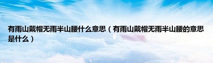 欢迎观看本篇文章,小升来为大家解答以上问题。有雨山戴帽无雨半山腰什么意思,有雨山戴帽无雨半山腰的意思是什么很多人还不知道,现在让我们一起来看看吧!