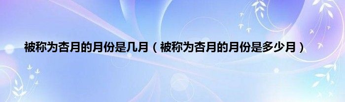 欢迎观看本篇文章,小升来为大家解答以上问题。被称为杏月的月份是几月,被称为杏月的月份是多少月很多人还不知道,现在让我们一起来看看吧!