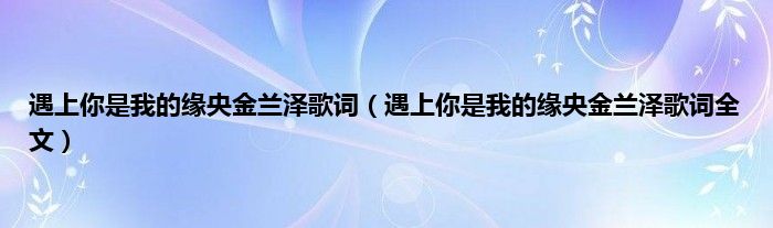欢迎观看本篇文章,小升来为大家解答以上问题。遇上你是我的缘央金兰泽歌词,遇上你是我的缘央金兰泽歌词全文很多人还不知道,现在让我们一起来看看吧!