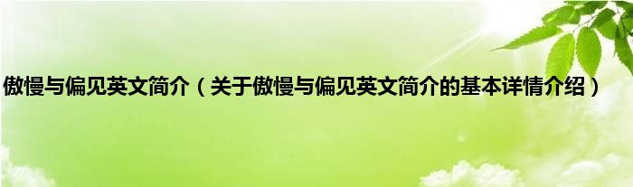 本文关于傲慢与偏见英文简介的基本详情介绍就讲解完毕,希望对大家有所帮助。
