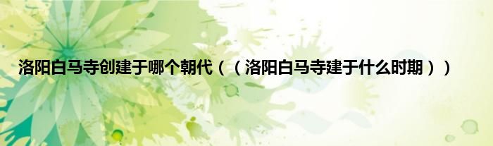 以下内容关于《洛阳白马寺创建于哪个朝代》的解答。