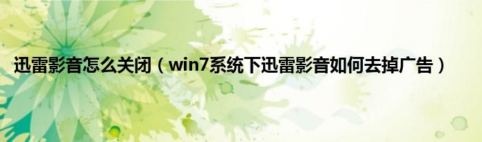 大家好,综合小编来为大家讲解下迅雷影音怎么关闭,win7系统下迅雷影音如何去掉广告这个很多人还不知道,现在让我们一起来看看吧!