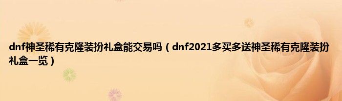 大家好,综合小编来为大家讲解下dnf神圣稀有克隆装扮礼盒能交易吗,dnf2021多买多送神圣稀有克隆装扮礼盒一览这个很多人还不知道,现在让我们一起来看看吧!