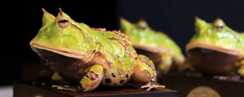 角蛙受惊会装死,角蛙在遇到危险时,装死是本能的反抗,同时还会分泌释放毒液。角蛙,是全世界最普遍的宠物蛙,角蛙的亚种至少有六种之多,其中最常见的就是钟角蛙,而最昂贵的就属亚马逊角蛙,又称为霸王角蛙。身体呈矮胖的模样,仿似一只粽子;嘴巴很大,全身皮肤布满细长的疣粒;眼睛上方有凸起的三角形肉质小角;身体底色以黄色、黄褐色、鲜绿色居多,上面则散布有不规则之黑褐色、啡红色、淡棕色的斑纹;全身布满大大小小凸出之疣粒。角蛙是守株待兔的猎食者,可供应的食物包括所有会动的昆虫、蚯蚓、金鱼、乳鼠及蛙类等。