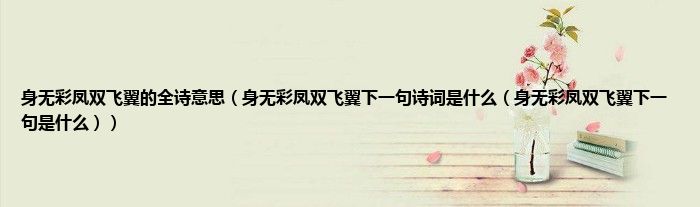 以下内容关于《身无彩凤双飞翼下一句》的解答。