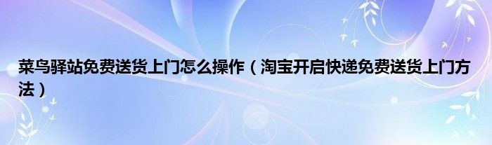 菜鸟驿站免费送货上门怎么操作?淘宝开放式快递免费送货上门方式