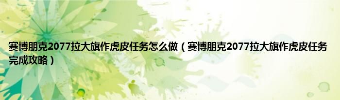 在赛博朋克2077如何做虎皮扯旗的任务?赛博朋克2077扯旗做虎皮任务完成攻略