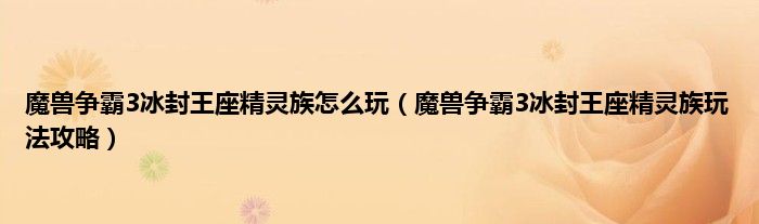 大家好,综合小编来为大家讲解下魔兽争霸3冰封王座精灵族怎么玩,魔兽争霸3冰封王座精灵族玩法攻略这个很多人还不知道,现在让我们一起来看看吧!