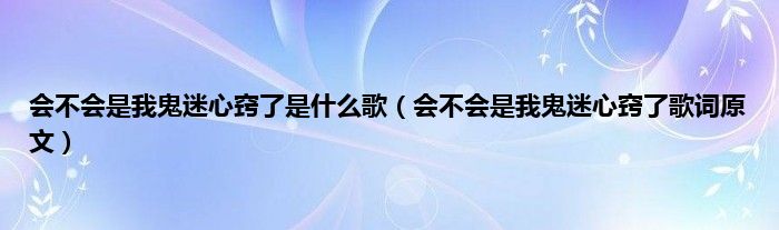 欢迎观看本篇文章,小升来为大家解答以上问题。会不会是我鬼迷心窍了是什么歌,会不会是我鬼迷心窍了歌词原文很多人还不知道,现在让我们一起来看看吧!