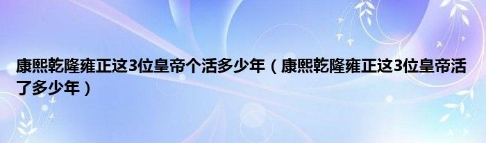 康熙乾隆雍正这3位皇帝个活多少年(康熙乾隆雍正这3位皇帝活了多少年)