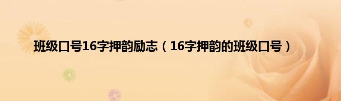 欢迎观看本篇文章,小升来为大家解答以上问题。班级口号16字押韵励志,16字押韵的班级口号很多人还不知道,现在让我们一起来看看吧!