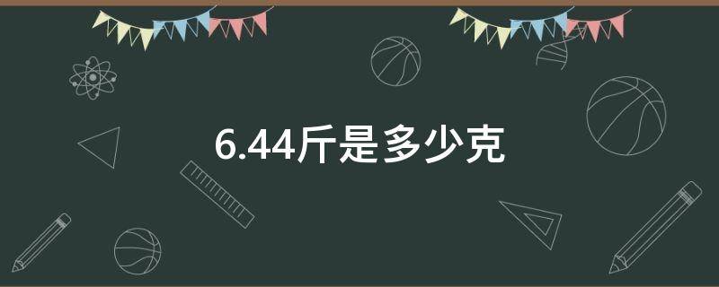 6.44斤是3220克。斤也作筋,质量单位:市制一斤为十两(旧制一斤为十六两),两斤等于一公斤。1斤等于500克。克(g)是一个质量单位,千克(kg)的千分之一。国际单位制中米、千克、秒制的质量单位,也是国际单位制的7个基本单位之一。法国大革命后,由法国科学院制定。原计划制作的是新颁布的质量的主单位-克的标准器,但因为当时工艺和测量技术所限,故制作了质量是克的1000倍的标准器,即千克标准原器。
