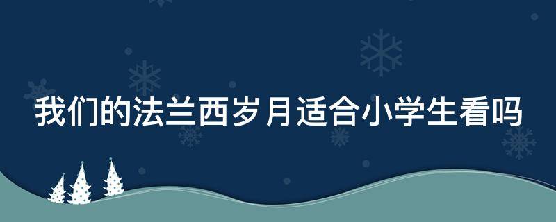 最佳答案我们的法兰西岁月适合小学生看,影片《我们的法兰西岁月》生动地再现了邓爷爷青少年时代的光辉形象,让小学生在重温邓爷爷年轻时精神风范的同时亦受到了深刻的爱国主义教育,对怎样爱国有了更深的理解。小学,是人们接受初等正规教育的学校,是基础教育的重要组成部分,属于九年义务教育范围之内。...