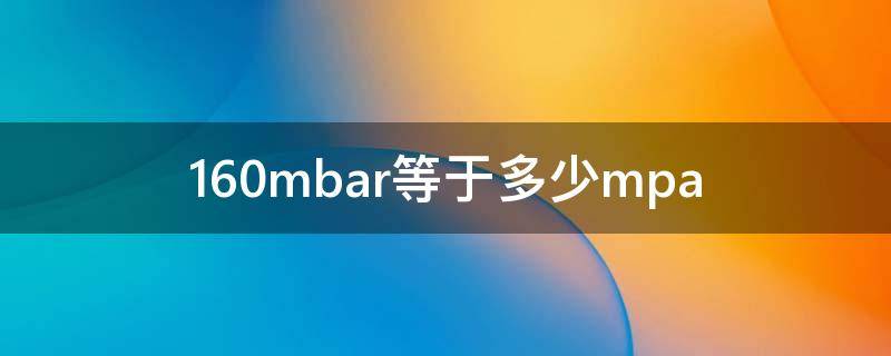 160mbar等于0.016mpa,1mbar(毫巴)=0.0001mpa(兆帕),所以160mbar*0.0001=0.016mpa。毫巴是用单位面积上所受水银柱压力大小来表示气压高低的单位。物理学上,压强的单位是用巴表示的:每一平方厘米面积上受到一达因的力,称为一巴。在气象上,嫌这个单位太小,取1000000达因/平方厘米为1巴,以巴的千分之一作为气压的单位,称为1毫巴。一毫巴为一巴的千分之一,等于0.76毫米水银柱高的压力。现改称百帕。1毫巴等于100帕(hPa)。