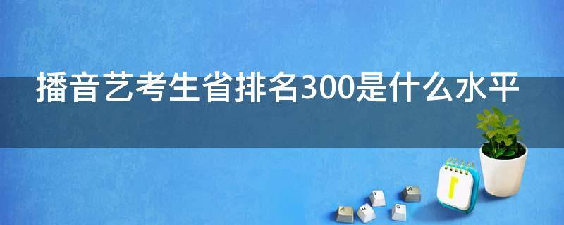 播音艺考生省排名300是中等水平。一般来说,艺考竞争非常激烈,即使在某些相对薄弱的省份,排名靠前也需要具备相当的实力和潜力,因此播音艺考生省排名300是中等水平。艺考生,全称是艺术类高考的学生。艺术生是按照所学习的专业特点划分的部分学生人群。一般分为美术和音乐两大类。高校招收艺术类专业学生的时候通在文化课考察的基础上还要附加艺术专业的加试才可以录取。艺考生的文化课是短板,一般在考前需要大量恶补文化课,考取更高的分数。