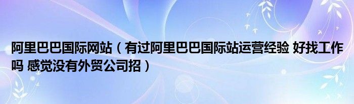 阿里巴巴国际网站(有过阿里巴巴国际站运营经验 好找工作吗 感觉没有外贸公司招)