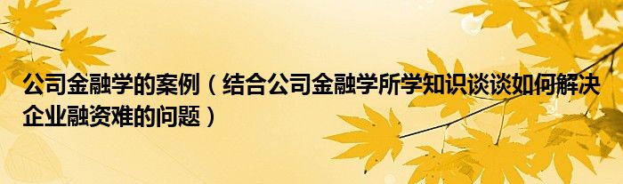 关于公司金融学的案例,结合公司金融学所学知识谈谈如何解决企业融资难的问题这个很多人还不知道,今天菲菲来为大家解答以上的问题,现在让我们一起来看看吧!