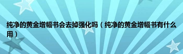 关于纯净的黄金增幅书会去掉强化吗,纯净的黄金增幅书有什么用这个很多人还不知道,今天菲菲来为大家解答以上的问题,现在让我们一起来看看吧!