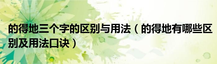 大家好,乐儿来为大家解答以下问题,的得地三个字的区别与用法,的得地有哪些区别及用法口诀很多人还不知道,现在让我们一起来看看吧!