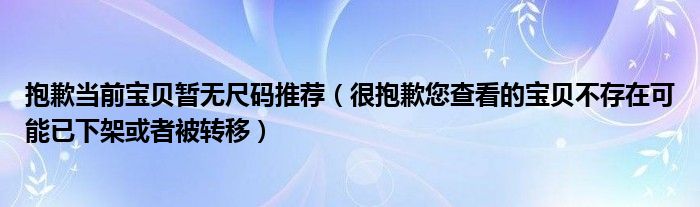 关于抱歉当前宝贝暂无尺码推荐,很抱歉您查看的宝贝不存在可能已下架或者被转移这个很多人还不知道,今天菲菲来为大家解答以上的问题,现在让我们一起来看看吧!